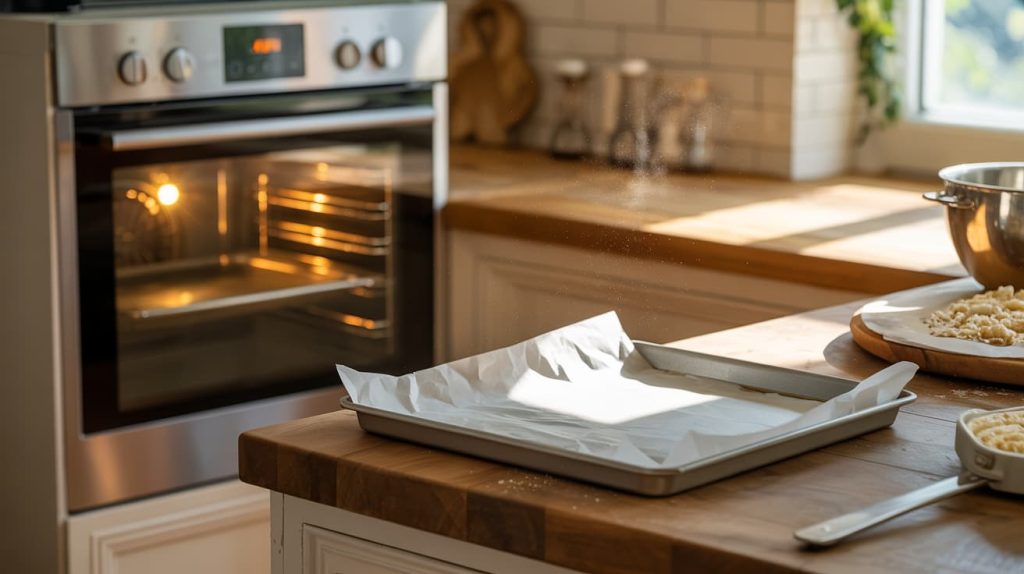 Preheat your oven to 350°F (175°C). Line a baking tray with parchment paper and set it aside.