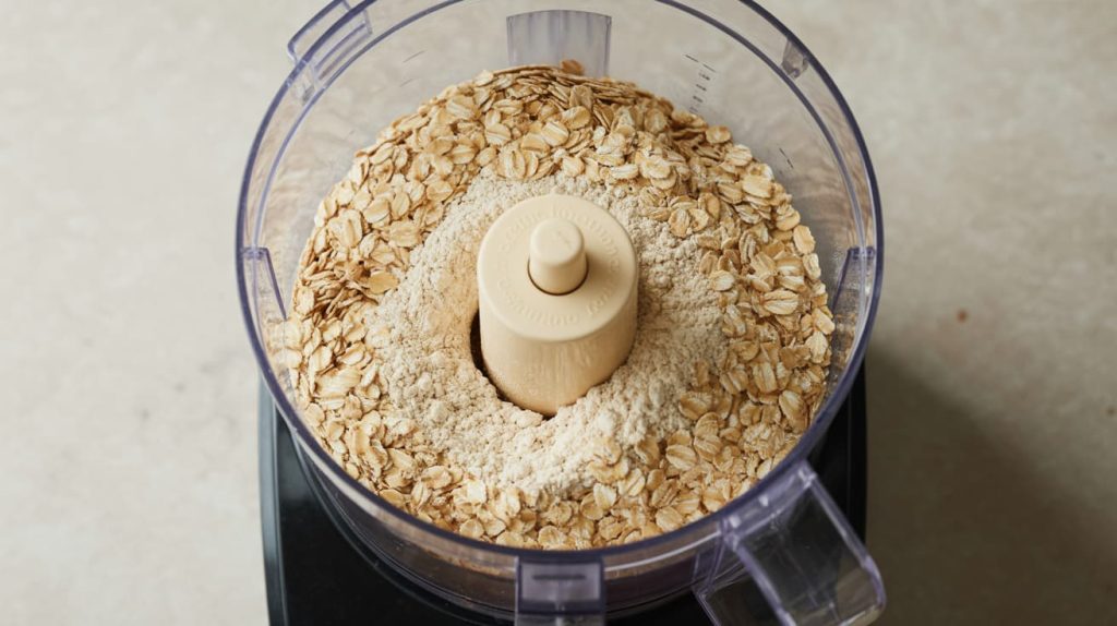 Place the rolled oats into a blender or food processor. Pulse a few times until they resemble coarse flour. You can leave some texture if your dog enjoys crunchier biscuits.